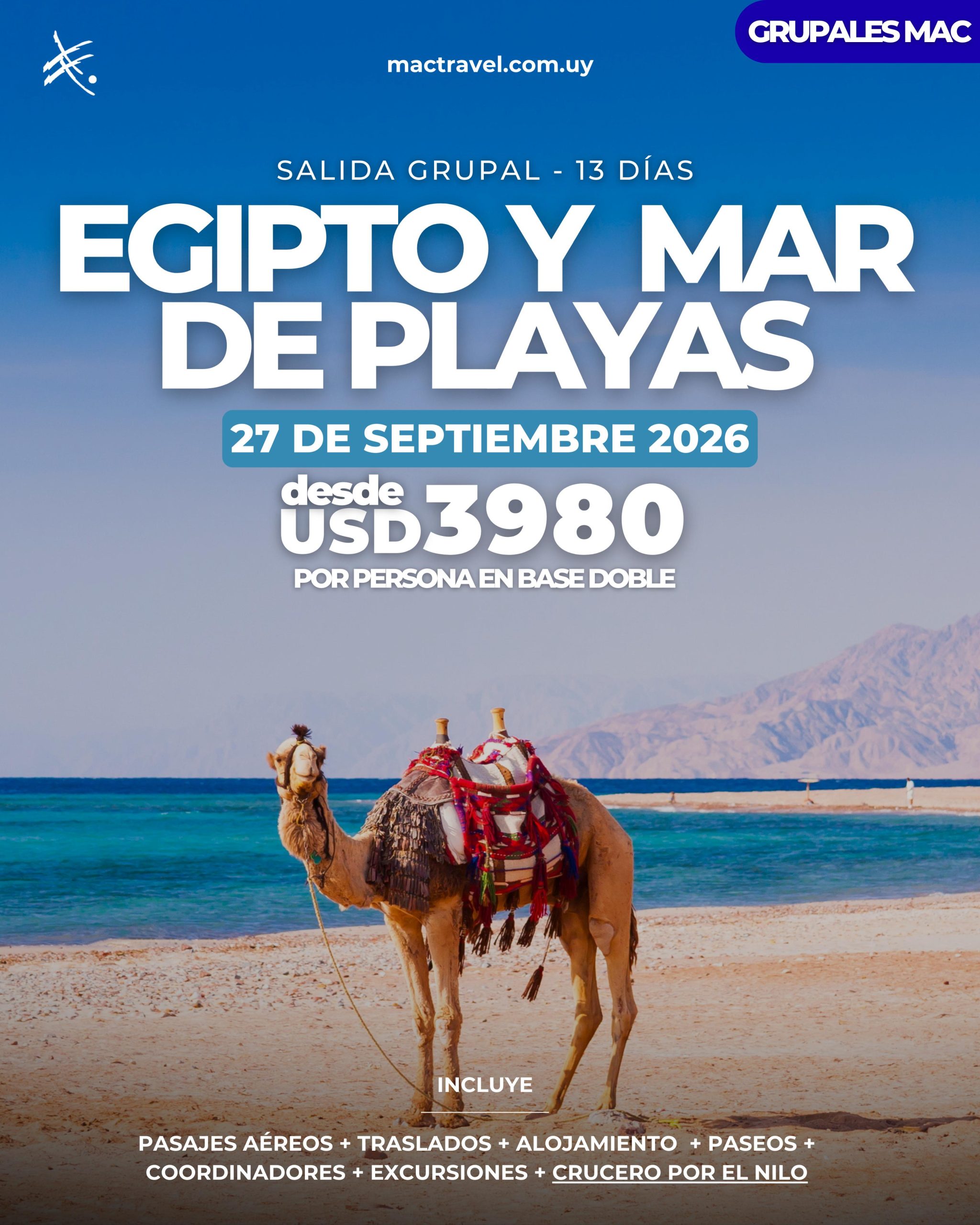 El viaje incluye ciudades históricas, templos milenarios y playas increíbles. Sin duda, es una experiencia perfecta para descubrir la riqueza cultural y natural de Egipto.